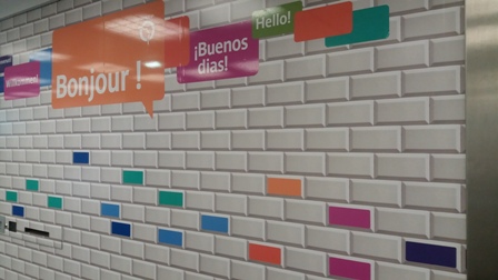 Some plastic hello signs have been added in different languages.