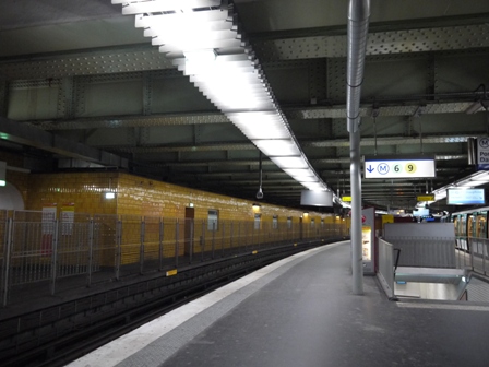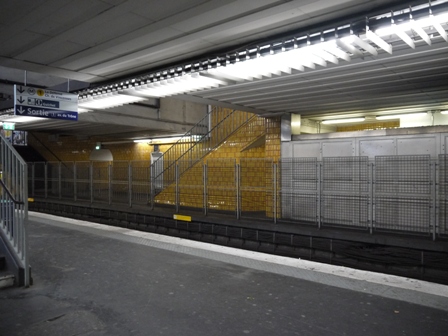 View towards the other side to the stairs from the platform towards the platforms of the lines 6 and 7.